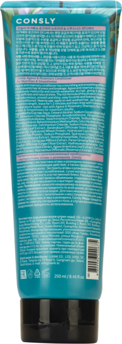 Нанесите кондиционер на влажные вымытые волосы, равномерно распределите по всей длине, оставьте на 1-2 минуты и смойте теплой водой. Для максимального результата используйте вместе с питательным и восстанавливающим шампунем с экстрактами агавы и розмарина, Consly.
