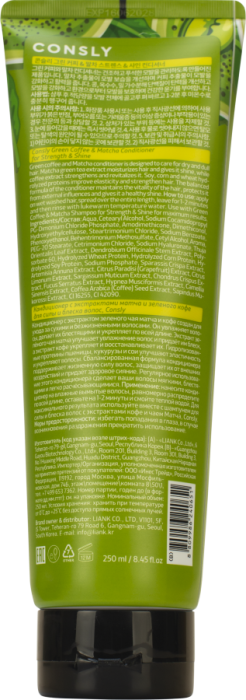 Кондиционер с экстрактом зеленого чая матча и кофе создан для ухода за сухими и безжизненными волосами. Он увлажняет волосы, делает их блестящими и укрепляет по всей длине. Экстракт зелёного чая матча улучшает увлажнение волос и придаёт им блеск, а экстракт кофе укрепляет и восстанавливает их. Гидролизованные протеины пшеницы, кукурузы и сои улучшают эластичность и укрепляют волосы. Сбалансированная формула кондиционера поддерживает жизненную силу волос, защищает их от внешних воздействий и придаёт здоровое