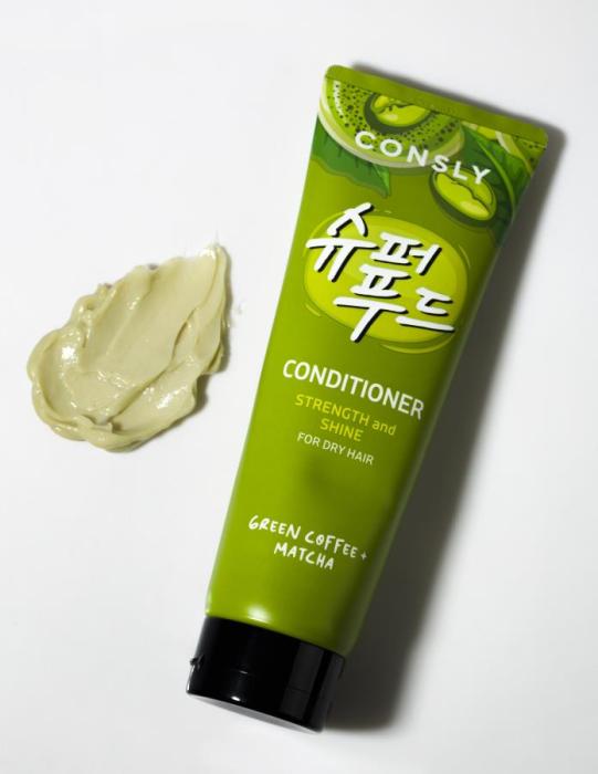 Нанесите кондиционер на влажные вымытые волосы, равномерно распределите по всей длине, оставьте на 1-2 минуты и смойте теплой водой. Для максимального результата используйте вместе с шампунем для силы и блеска волос с экстрактами кофе и чаем Матча, Consly.