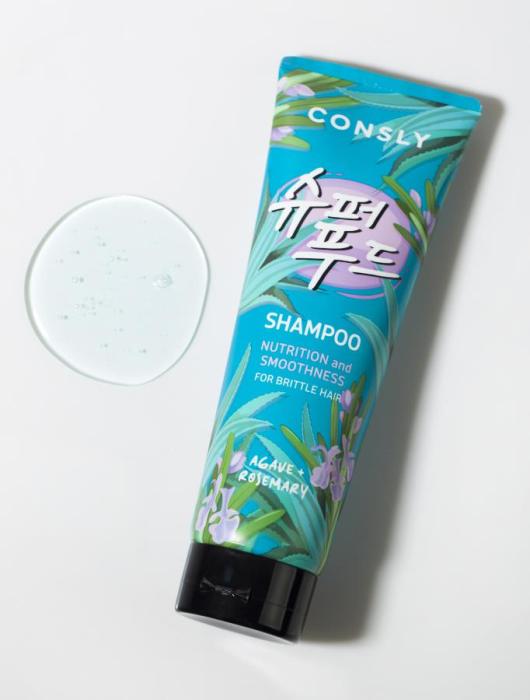 Шампунь разработан для ухода за ломкими и поврежденными волосами, восстанавливая их структуру и придавая здоровый блеск. Экстракт агавы глубоко питает волосы, увлажняет их и помогает сохранить природную эластичность. Розмарин освежает кожу головы, укрепляет волосы от корней и помогает сократить их выпадение. Протеины пшеницы, кукурузы и сои восстанавливают повреждённые участки волос, делая их более сильными и гладкими. Шампунь деликатно очищает, предотвращает сухость, борется с ломкостью и секущимися кончик