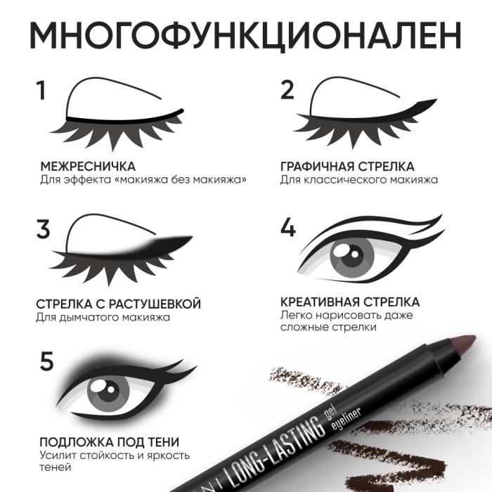 Гелевый карандаш для глаз для создания идеальных стрелок любой ширины и формы в одно движение.