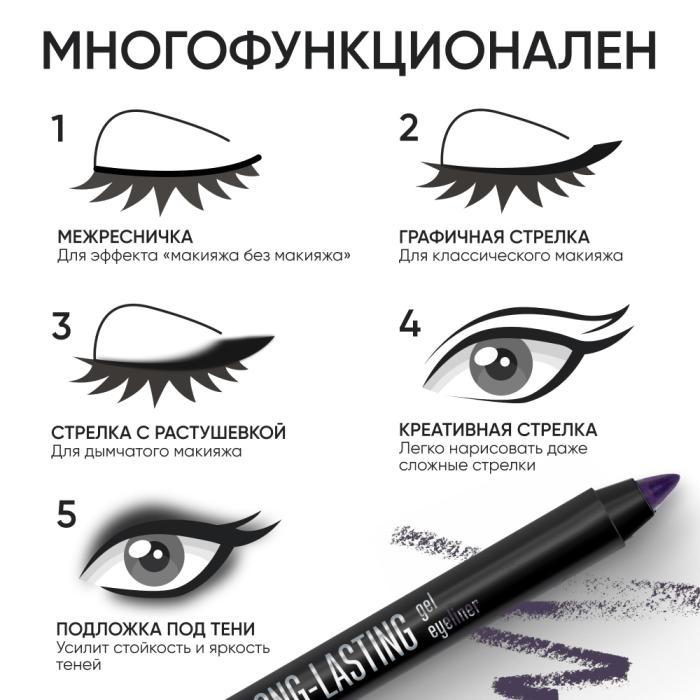 Гелевый карандаш для глаз для создания идеальных стрелок любой ширины и формы в одно движение.