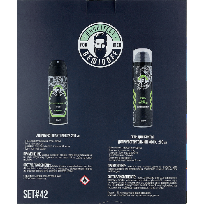 Набор Set42 (Гель для бритья для чувствительной кожи 200мл + Антиперспирант Energy 200мл) мужской