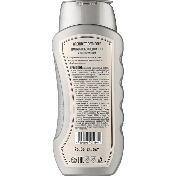 Для всех типов волос и кожи. Эффективно очищает волосы и кожу. Содержит витамины и микроэлементы. Поддерживает увлажнение. Подходит для ежедневного использования.