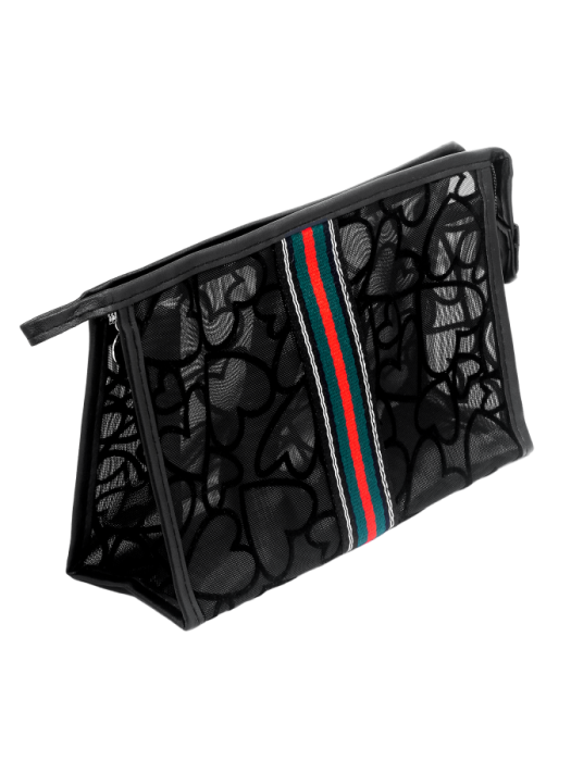 Большая черная косметичка из сетки с бархатом от бренда Shinewell — это компактное хранение средств для макияжа, кистей и уходовых продуктов для лица. Органайзер для косметики размером 29 х15 см подойдет для домашнего использования и для поездок. Содержит одно вместительное отделение без карманов.