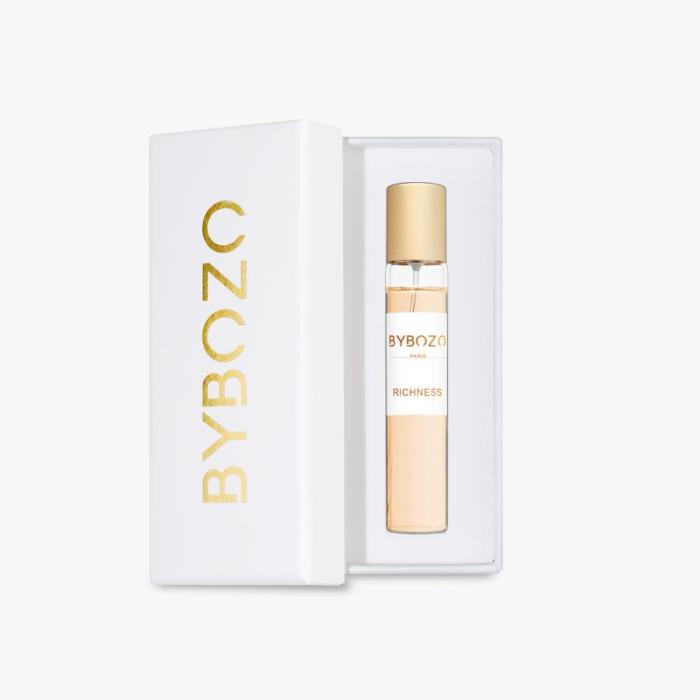 Richness – аромат, воплощающий благородство и чистоту души. Как говорит Хамуди Халил, основатель парфюмерного дома BYBOZO, истинное богатство - это не машины, дома и заводы, которыми ты владеешь. Богатство - это благородство души, это люди и их уважение друг к другу.