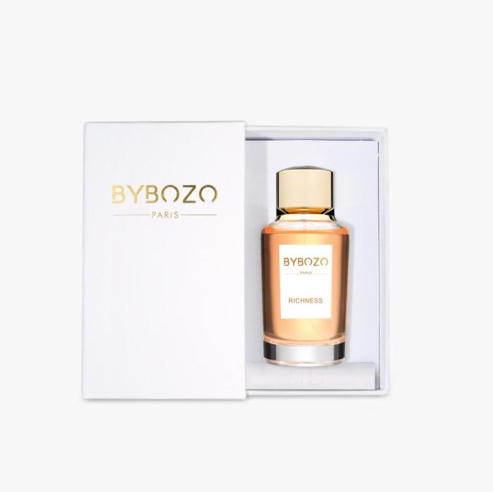 Richness – аромат, воплощающий благородство и чистоту души. Как говорит Хамуди Халил, основатель парфюмерного дома BYBOZO, истинное богатство - это не машины, дома и заводы, которыми ты владеешь. Богатство - это благородство души, это люди и их уважение друг к другу.