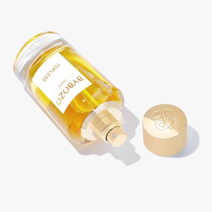 Topless – это воспоминания о незабываемом и даже несколько шокирующем выходном, который Хамуди, основатель парфюмерного дома BYBOZO, провел на Ибице. Веселье, сумасшествие, кураж и роскошь во всем её проявлении – всё это так потрясло создателя BYBOZO, что в его голове мгновенно родилась идея этого провокационного аромата.