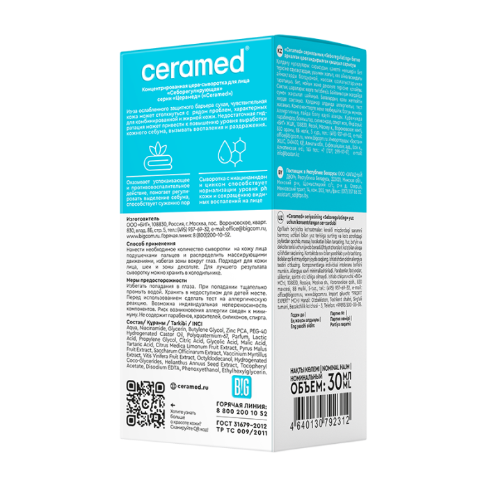 Ceramed Сыворотка-цера для лица себорегулирующая с ниацинамидом и цинком 30 мл