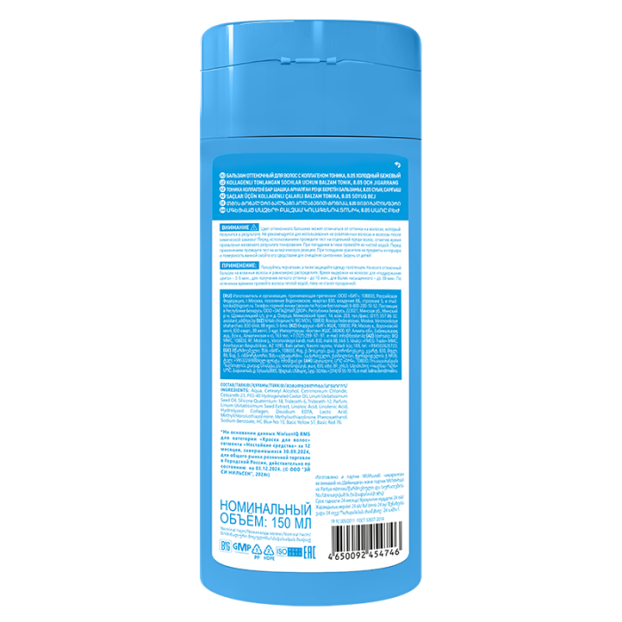 Тоника Оттеночный бальзам для волос Нейтрализатор желтизны 150 мл