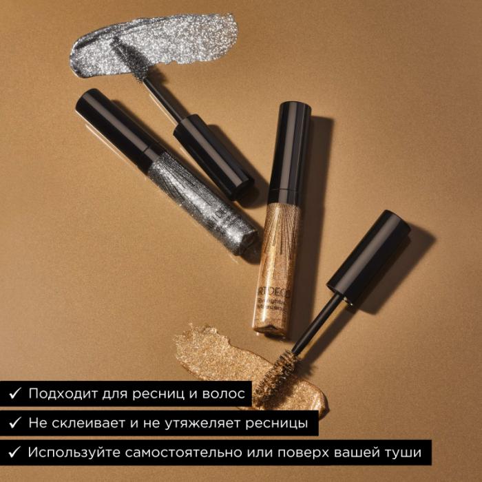 Создайте неотразимый сверкающий макияж с ARTDECO! Тушь Eyelights Mascara придает ресницам выразительное мерцание, может использоваться самостоятельно либо поверх обычной туши в качестве финишного покрытия. Eyelights Mascara имеет прозрачную гелевую основу с множеством сияющих частиц, не утяжеляет и не склеивает ресницы. Совет: можно использовать для создания мерцающих акцентов в прическе!