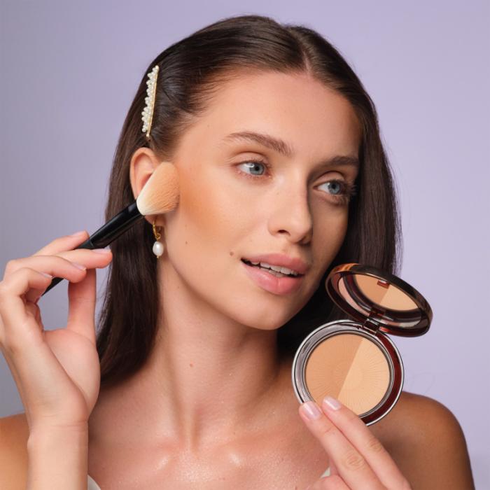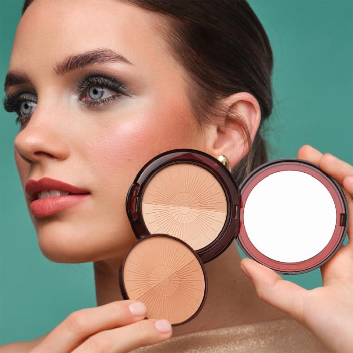 Подарите своей коже здоровое сияние и эффект идеального загара с нашей компактной пудрой-бронзатором: