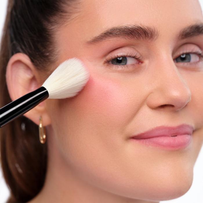 Нанесите румяна на щёки и растушуйте пальцами или спонжем.