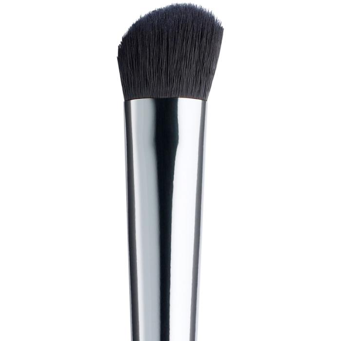 Кисть создана специально для растушевки теней, что делает её идеальной для создания мягких переходов и выразительных акцентов. Благодаря скошенной округлой форме, она подходит для работы с компактными и рассыпчатыми тенями. Вы можете использовать её для нанесения теней на всё веко, подвижную часть, складку века или уголки глаз. Она идеально справляется с моделированием формы глаза, помогая создать как естественный, так и более драматичный образ.