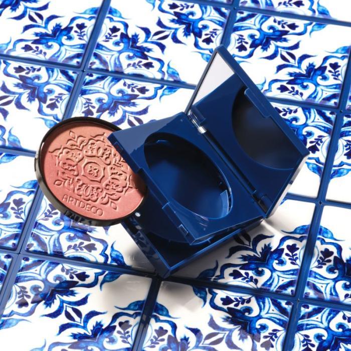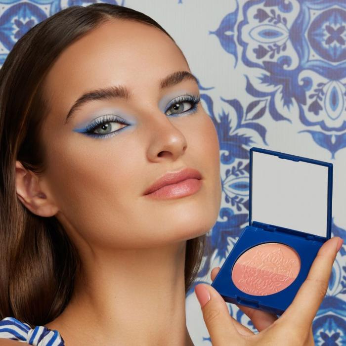 Упаковка в стиле азулежу делает румяна не только функциональным продуктом, но и стильным аксессуаром.