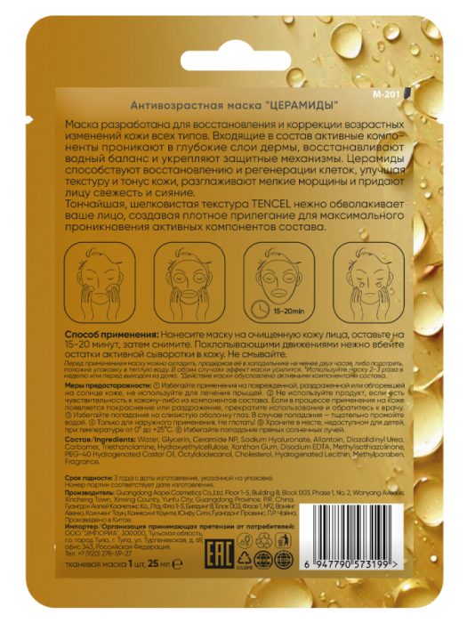 Тканевая маска Антивозрастная Церамиды 25 мл