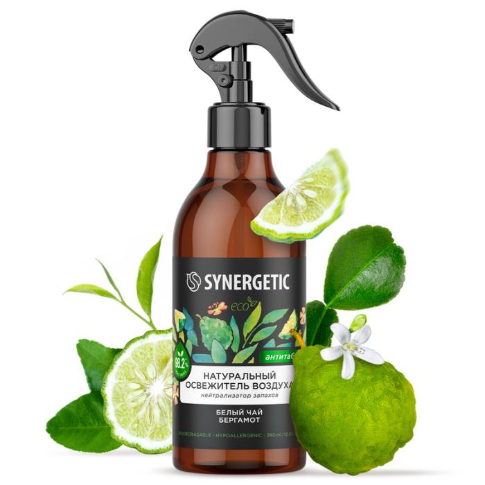 Биоразлагаемый освежитель воздуха, нейтрализатор запахов SYNERGETIC "Белый чай и бергамот" на водной основе - это безопасная формула с высокой концентрацией натуральных компонентов. Парфюмерная композиция с натуральными эфирными маслами наполняет воздух свежим ароматом белого чая с цитрусовыми нотами. Освежитель эффективно устраняет, а не маскирует стойкие неприятные запахи от табака, домашних животных, приготовления пищи и других источников в гостиной, ванной комнате и санузле, спальне, коридоре, кухне, автомобиле, офисе и других помещениях. Подходит для устранения неприятных запахов с тканей (диванов, подушек, ковров, занавесок, простыней, тканевых автокресел, постельного белья), занавесок для душа и спортивных ковриков. Не оставляет следов на поверхностях, увлажняет воздух в помещении и способствует осаждению пыли. Не содержит фреонов, газов-пропеллентов, фталатов и красителей. Мелкодисперсное распыление позволяет обеспечить экономичный расход средства.