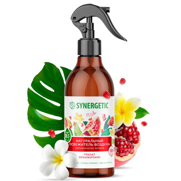 Биоразлагаемый освежитель воздуха, нейтрализатор запахов SYNERGETIC "Гранат и франжипани" на водной основе - это безопасная формула с высокой концентрацией натуральных компонентов. Парфюмерная композиция с натуральными эфирными маслами наполняет воздух свежим ароматом спелого граната с тропическими нотами. Освежитель эффективно устраняет, а не маскирует стойкие неприятные запахи от табака, домашних животных, приготовления пищи и других источников в гостиной, ванной комнате и санузле, спальне, коридоре, кухне, автомобиле, офисе и других помещениях. Подходит для устранения неприятных запахов с тканей (диванов, подушек, ковров, занавесок, простыней, тканевых автокресел, постельного белья), занавесок для душа и спортивных ковриков. Не оставляет следов на поверхностях, увлажняет воздух в помещении и способствует осаждению пыли. Не содержит фреонов, газов-пропеллентов, фталатов и красителей. Мелкодисперсное распыление позволяет обеспечить экономичный расход средства.