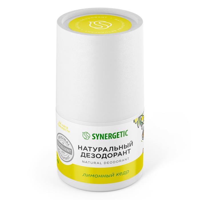 Натуральный дезодорант SYNERGETIC "Лимонный кедр" Unisex с нежным ароматом не содержит солей алюминия, поэтому не блокирует потоотделение и не влияет на естественные обменные процессы. Активные натуральные компоненты триэтил цитрат и трегалоза мягко воздействуют на кожу и обеспечивают надежную защиту, препятствуя размножению микроорганизмов, вызывающих неприятный запах.