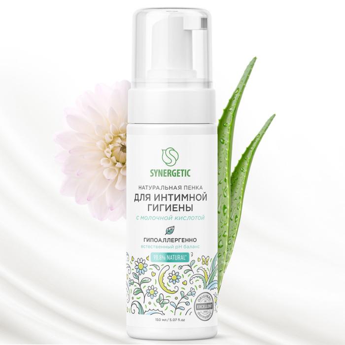 Натуральная пенка SYNERGETIC для интимной гигиены имеет легкую невесомую текстуру и обеспечивает деликатный ежедневный уход за самыми нежными местами. Средство легко смывается, обеспечивая комфорт и чувство свежести. Мультифункциональный компонент натурального происхождения софоролипид мягко очищает и сохраняет естественный микробиом, а натуральный пребиотик и природный антиоксидант трегалоза активно увлажняет и успокаивает чувствительную кожу. Бисаболол оказывает регенерирующее действие, способствует восстановлению гидробаланса. Активный увлажняющий комплекс в сочетании с соком алоэ вера обладает смягчающим, тонизирующим и противовоспалительным действием.