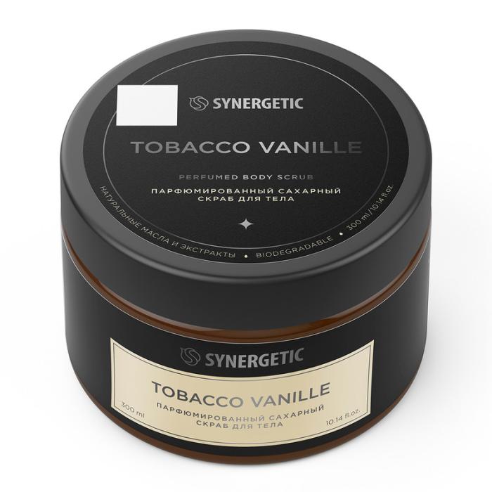 Парфюмированный скраб для тела SYNERGETIC tobacco-vanille/табак-ваниль деликатно отшелушивает и очищает кожу. Гиалуроновая кислота увлажняет кожу, а масла ши и макадамии питают и дарят эластичность. Парфюмерная композиция наполнена восхитительными сочетаниями сладких восточных, древесно-пряных и пьянящих табачных нот. Загадочный характер аромата открывается дымными и терпкими оттенками специй и табачных листьев, которые плавно перетекают в сладость ванили, какао и обжаренных бобов тонка. Завершается симфония аккордами многогранных древесных акцентов с нотами сухофруктов. Аромат наполнен тёплым вечерним настроением, он восхищает своей многогранной красотой и смелым темпераментом.