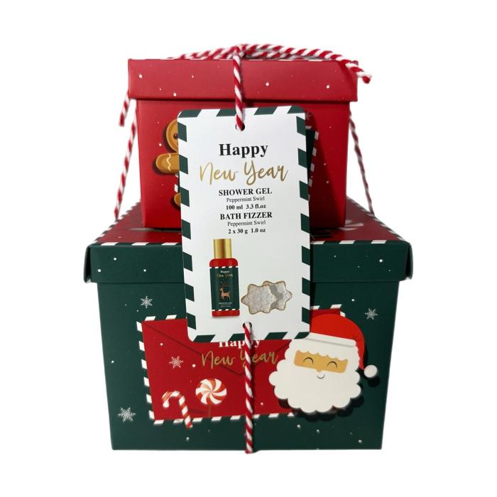 Нежный душистый гель для душа отлично пенится. Альтернативой душу послужит расслабляющая ванная с ароматической солью, которую нужно растворить в теплой воде. Набор упакован в коробку в виде новогоднего подарка.