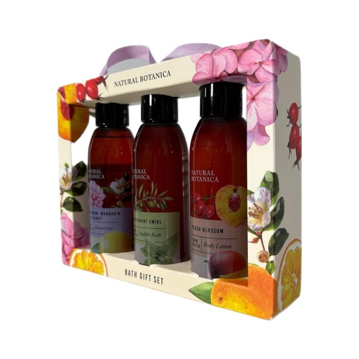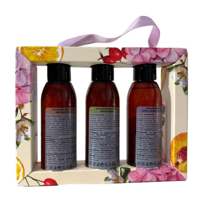 В состав подарочного набора : гель для душа 120 мл, лосьон для тела 120 мл, пена для ванны 120 мл.