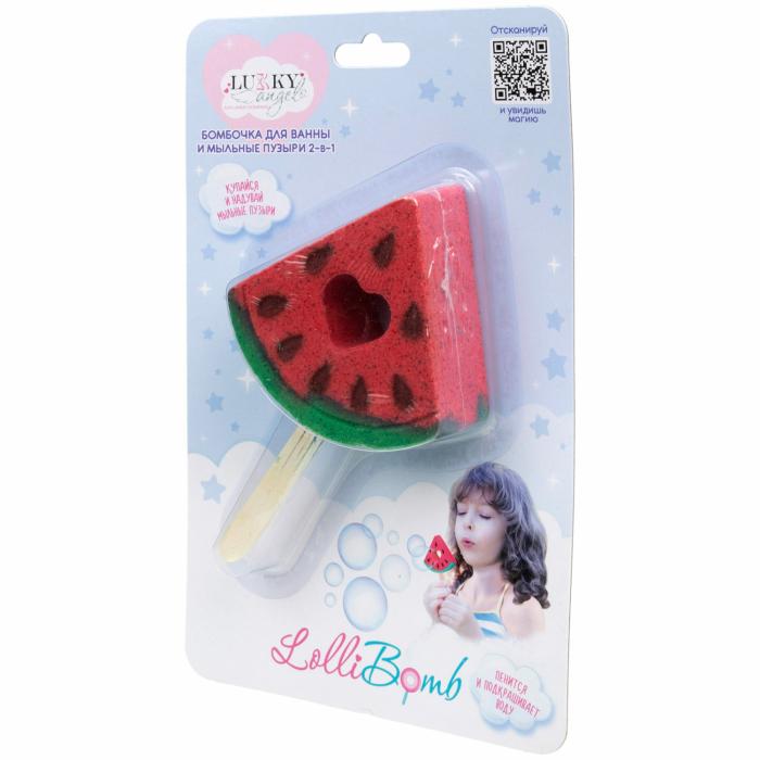 LolliBomb Бомбочка для ванны и мыльные пузыри 2в1 красный Арбузный ломтик 120 г