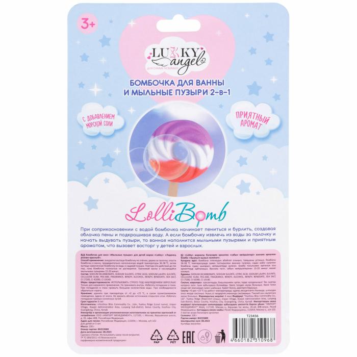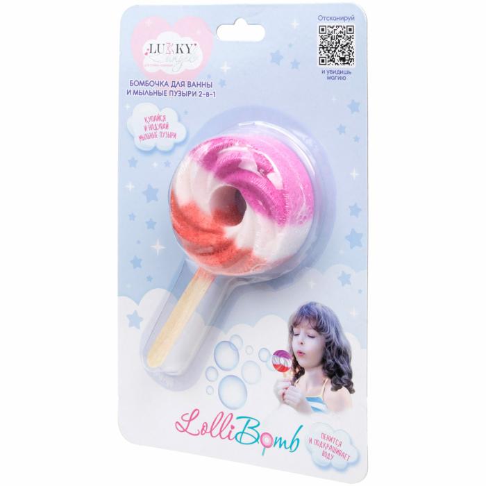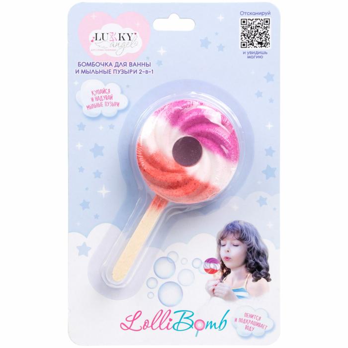 Бомбочка для ванны и мыльные пузыри 2 в 1 LolliBomb от Lukky Angel приглашает окунуться в мир магического релакса и получить невероятный восторг от принятия ванны! При соприкосновении с водой бурлящая бомбочка для ванны создает приятный шипучий эффект, превращаясь в облачка пены. Это бомбочка для ванны с сюрпризом, который заключается в красочном растворении средства для принятия ванны. Если бомбочку извлечь из воды за палочку и начать выдувать пузыри, то ванная комната наполнится мыльными пузырями и приятным ароматом, что вызовет восторг у детей и у взрослых. Натуральная морская соль в составе обладает тонизирующими свойствами, способствует снятию стресса и расслаблению. Такие бомбочки для ванной детские, но могут понравиться и девушкам благодаря стильному дизайну! Бомбочка для ванны большая, ее вес целых 100 грамм. Подходит для детей от 3 лет.