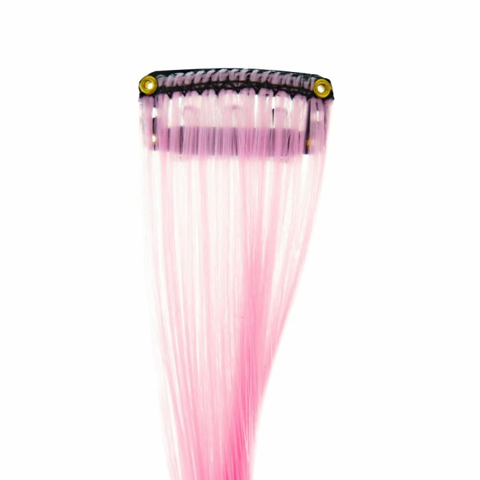 Прядь накладная на заколке одноцветная розовая 55см 1 шт