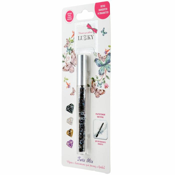 Twix Mix Тушь для ресниц и бровей с блёстками ультратонкая кисточка черный с блесткам 2 г
