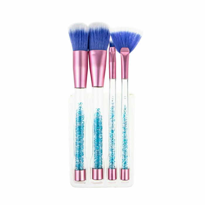 Набор кистей для нанесения макияжа с подвижными кристалликами в ручках голубой 4шт 1 шт