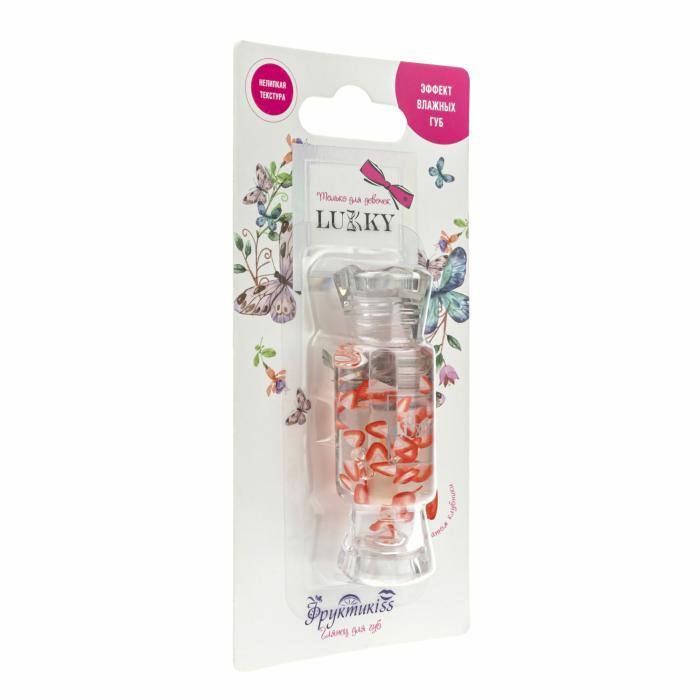 Новинка от Lukky- Фруктикiss масло-блеск для губ с элементами в виде кусочков фруктов, клубника, объем 8 мл.