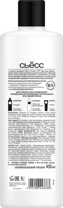 Бальзам Сьесс Repair подходит для ежедневного использования. Он восстанавливает структуру волос, делая их мягкими и послушными. Попробуйте профессиональный уход от Сьесс и наслаждайтесь красивыми и здоровыми волосами!"