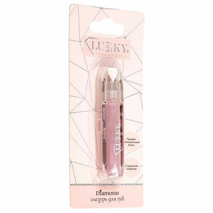 Глазурь для губ Lukky Diamond с ароматом клубники от бренда Lukky придаёт губам нежный розовый оттенок и изысканный бриллиантовый блеск. Лёгкая текстура легко наносится, не липнет и делает губы визуально более гладкими и ухоженными. Аромат спелой клубники добавляет удовольствия при использовании и создаёт атмосферу сладкого настроения. Объём средства — 2,5 мл.