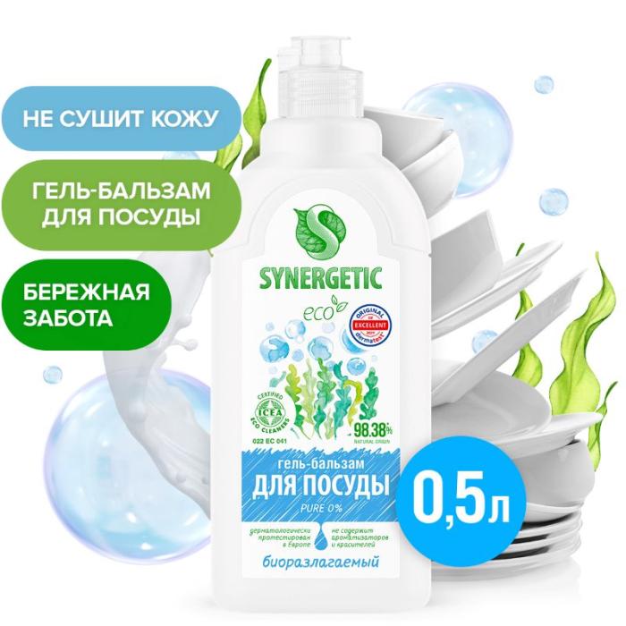 Биоразлагаемый гель-бальзам для мытья посуды и детских игрушек SYNERGETIC "Pure 0%" - это экологичное, безопасное и эффективное средство для мытья всех видов посуды, в том числе детской, кухонного инвентаря и детских игрушек от любых видов загрязнений. Легко смывается водой и не оставляет следов на посуде. Содержит ухаживающие компоненты для увлажнения кожи рук. Комплекс биоразлагаемых ПАВ из растительного масла и энзимов эффективно удаляет жир и сложные загрязнения даже в холодной воде, придавая посуде зеркальный блеск. Нейтрализует неприятные запахи. Экстракты ламинарии и спирулины питают и увлажняют кожу рук, делая ее более мягкой, повышая эластичность. Эффективность средства подтверждена в Германии. Международный экологический сертификат ICEA подтверждает биоразлагаемость, безопасность и эффективность средства. Не содержит красителей и ароматизаторов. Подходит для чувствительной кожи. Дерматологически протестирован независимым институтом Dermatest® в Германии. Биоразлагаемые компоненты не вредят микрофлоре септических установок при использовании средства в соответствии со способом применения.