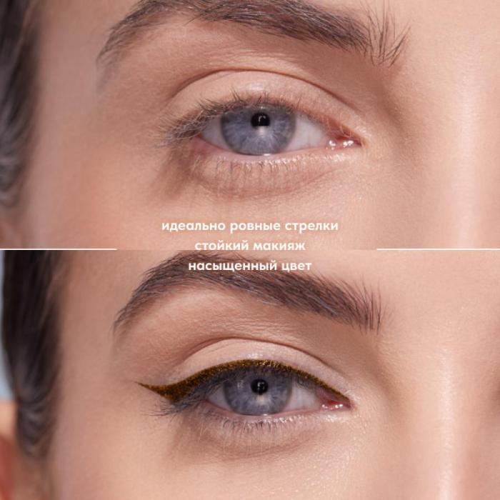 Удобный фетровый аппликатор с тонким пластичным кончиком легко наносит продукт, создает безупречно точные линии и позволяет рисовать стрелки любой формы. Улучшенная высокопигментированная текстура не отпечатывается на веке, не осыпается, не трескается после фиксации и оставляет сатиновый финиш. Подводка представлена в двух оттенках: глубокий коричневый выглядит нежно и благородно, а насыщенный черный поможет создать более дерзкий макияж. Воздухонепроницаемый колпачок с уникальной системой защиты от высыхания air-tight продлевает время использования. Подводки имеют лаконичный и стильный дизайн, а золотой логотип на лицевой стороне добавляет роскоши и элегантности.