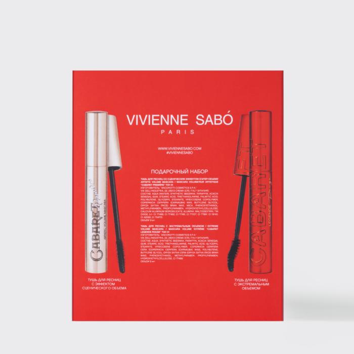 Набор VIVIENNE SABÓ для выразительного взгляда — идеальный дуэт твоих любимых бьюти-средств. Черная тушь CABARET PREMIÈRE придает ресницам сценический объем. Уникальная пластиковая щеточка с зауженным кончиком равномерно распределяет тушь по ресницам, разделяет их и добавляет густоту. CABARET LEGENDE ROUGE — приглашение на праздник красоты, вдохновленный атмосферой парижского кабаре. Тушь с волнообразной силиконовой щеточкой придает суперобъем, приподнимает и подкручивает ресницы, создавая эффект керлера. Ею легко можно прокрасить ресницы во внутреннем уголке глаза и нижние реснички. Порадуй набором VIVIENNE SABÓ в подарочной упаковке себя и близких!