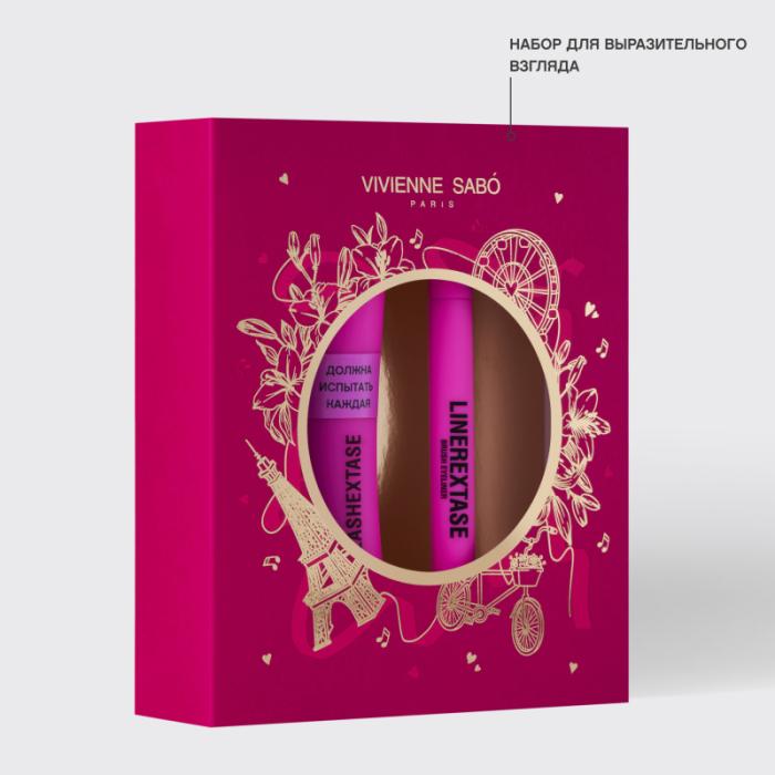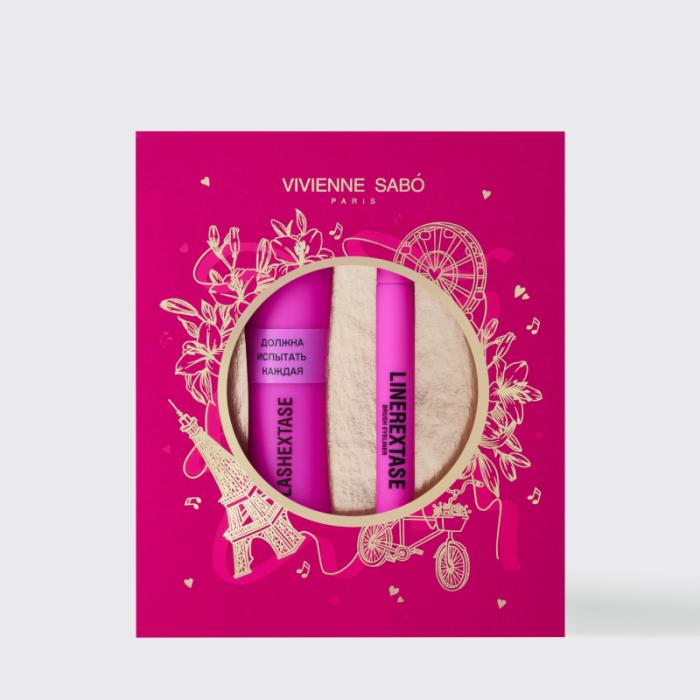 Набор VIVIENNE SABÓ для выразительного взгляда — идеальный дуэт твоих любимых бьюти-средств. Тушь LASHEXTASE с щеточкой с большим количеством тонких и гибких щетинок разной длины создает эффект мультиобъемных ресниц. Мягкая эластичная текстура обволакивает каждую ресничку и стойко держится в течение дня. Ее легко наносить в несколько слоев, усиливая эффект без комочков. Тушь упакована в тактильно приятный силиконовый чехол. Черная влагостойкая подводка LINEREXTASE с упругой кисточкой легко скользит в руке, помогая уверенно дойти до самых ярких стрелок в любых обстоятельствах. Лайнер будет стойким до тех пор, пока ты сама не захочешь смыть его теплой водой. Порадуй набором VIVIENNE SABÓ в подарочной упаковке себя и близких!