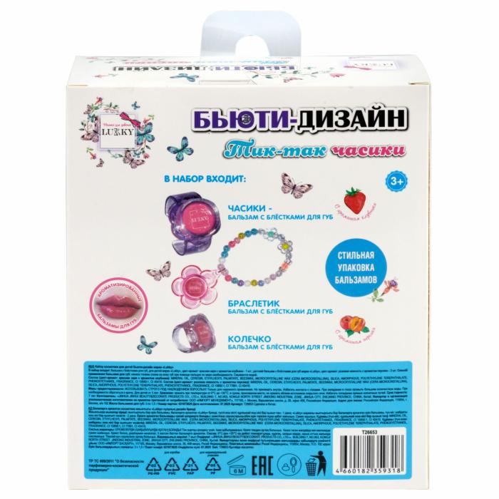 Бьюти Дизайн Тик-так часики Набор /бальзамы для губ с блестками, часики, колечко и браслетик/ 1 шт