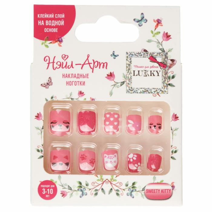 Нэйл-Арт Набор# Sweety Kitty 10 накладных ногтей на клеевой основе 3-10лет 1 шт