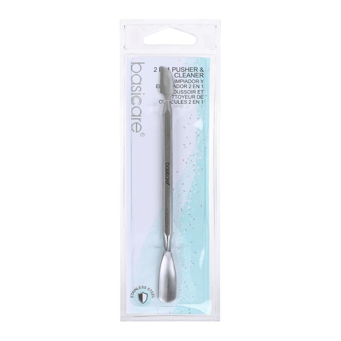 Долговечный качественный инструмент из нержавеющей стали, состоящий из пушера и шабера. Пушер в форме лопатки с закруглённым концом предназначен для отодвигания кутикулы с ногтевой пластины. Шабер в форме топорика предназначен для удаление загрязнений из-под ногтевой пластины или с поверхности ногтя, а также остатков приросшей кутикулы после обработки пушером.