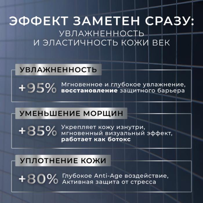 Насыщенная, питательная текстура смягчает и увлажняет нежную и тонкую кожу вокруг глаз мгновенно даря ей чувство комфорта. Крем быстро впитывается и служит прекрасной основой для макияжа. Эффект крема сразу заметен: это увлажненность и эластичность кожи.