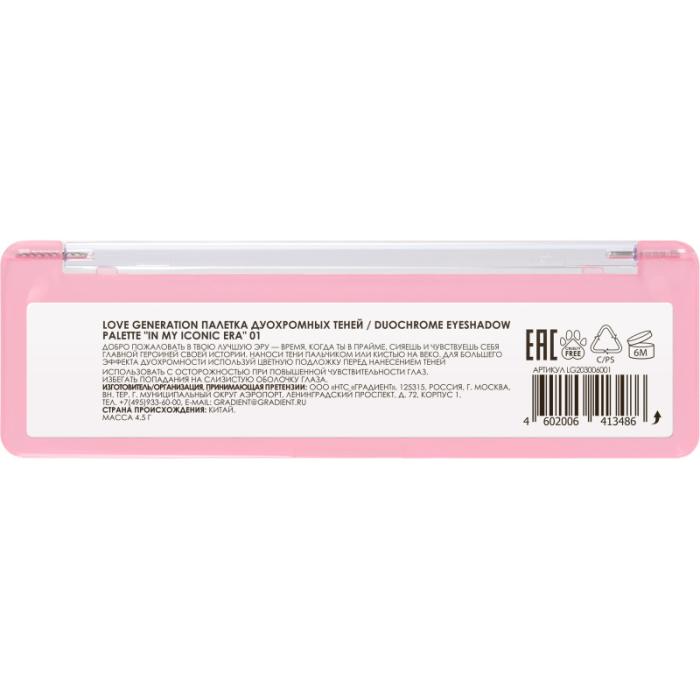 Палетка дуохромных теней In My Iconic Era № 01 фиолетово-голубой дуохром, золотисто-лаймовый дуохром, холодный розово-голубой дуохром, холодный бело-голубой дуохром, лилово-бирюзовый дуохром