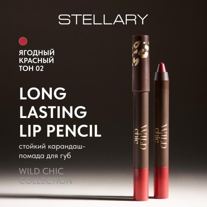 Карандаш-помада WILD CHIC от STELLARY со стойкой формулой имеет приятную бархатную текстуру. Толстая форма позволяет прорисовать не только контур губ, но и всю их поверхность, заменяя помаду. Продукт представлен в двух холодных оттенках: тон 01 — сливовый розовый, тон 02 — ягодный красный. Карандаш можно сделать острее точилкой STELLARY. Корпус карандаша выполнен в коричнево-золотой гамме с дерзким леопардовым принтом.