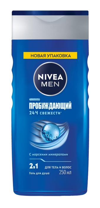 Гель для душа «Пробуждающий 2в1 для тела и волос от NIVEA MEN в обновленном дизайне! Формула геля с натуральными морскими минералами в составе подарит ощущение свежести на 24 часа' и тонизирующий аромат. Получите заряд свежести и уверенности, наполняющий энергией для новых побед.