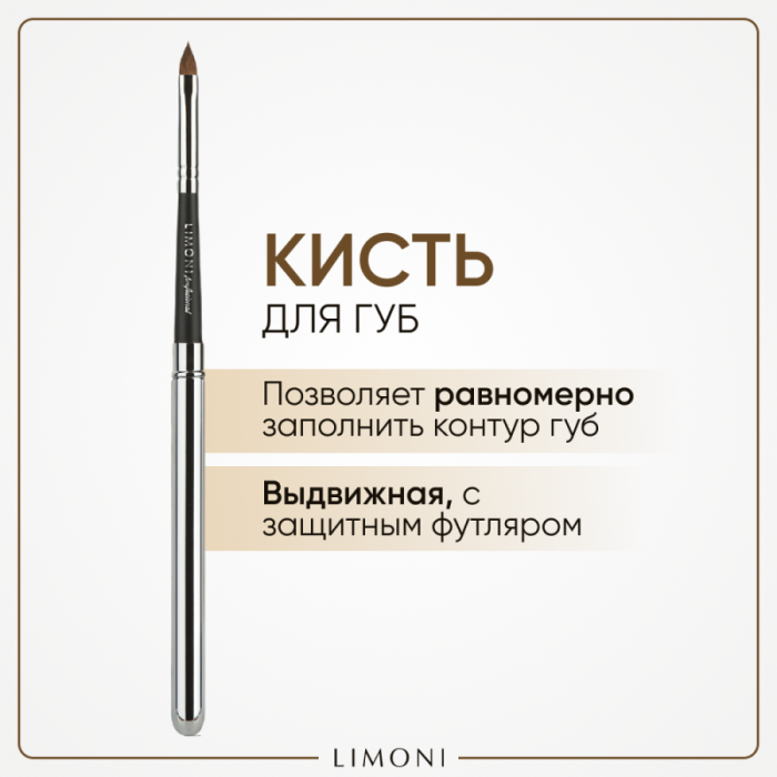 LIMONIPROFESSIONAL VENECIA Кисть-автомат для губ (соболь)Кисть-автомат для губ №24 – это разработка лучших специалистов итальянской компании Limoni. Эта упругая кисть среднего размера предназначена для нанесения помады и блеска. Она позволяет нанести косметическое средство максимально точно. Кисть-автомат для губ №24 от Лимони сделана из высококачественного меха соболя. Ручка кисти, выполненная из матового дерева, удобно лежит в руке, что делает работу с ней максимально комфортной. Этот инструмент удовлетво