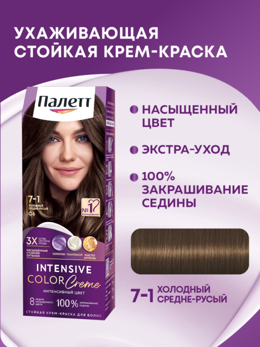 Благодаря тройной системе ухода стойкая крем-краска для волос Палетт обеспечивает бережное окрашивание. С аммиаком. Комплекс с Кератином, Пантенолом и Аргановым маслом проникает глубоко в структуру волоса, восстанавливая, увлажняя и питая его изнутри. Активные вещества оказывают смягчающее и укрепляющее воздействие, делая волосы гладкими и блестящими.