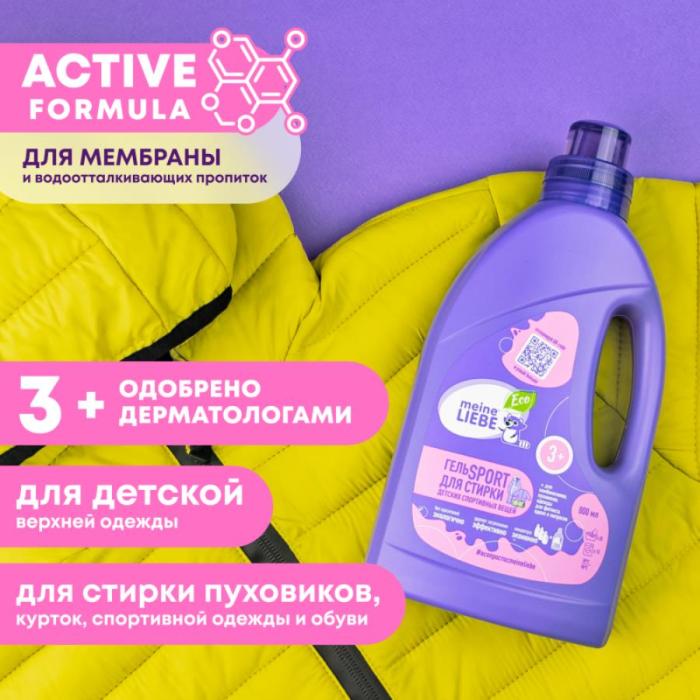 Биоразлагаемый гель-концентрат для стирки детской спортивной одежды и мембранных тканей, Meine Liebe (Майне Либе) обеспечивает бережное и эффективное очищение тканей, устраняет неприятные запахи и сохраняет свойства мембран и водоотталкивающих пропиток.