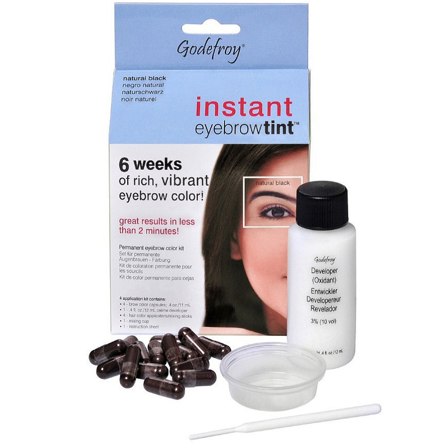 Вымойте и высушите брови. Смешайте красящий пигмент с оксидантом в пропорции – 1 капсула на 5-6 капель оксиданта. Нанесите смесь на одну бровь – начиная с середины брови. Подождите 1-3 мин. Снимите краску влажным бумажным полотенцем. Приступайте к окрашиванию второй брови. Если хотите достичь более темного эффекта, нанесите краску повторно.